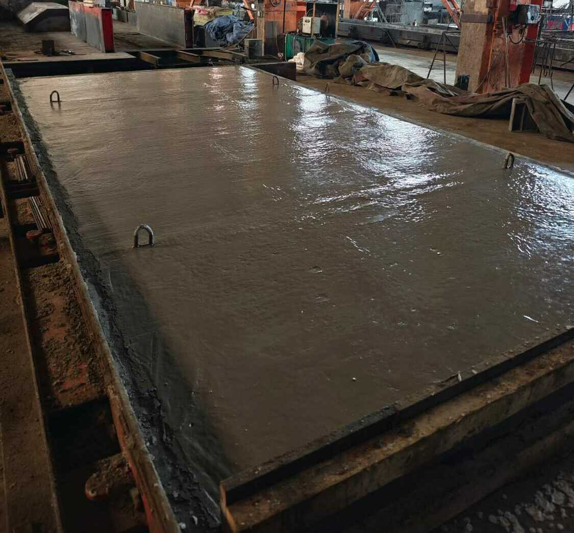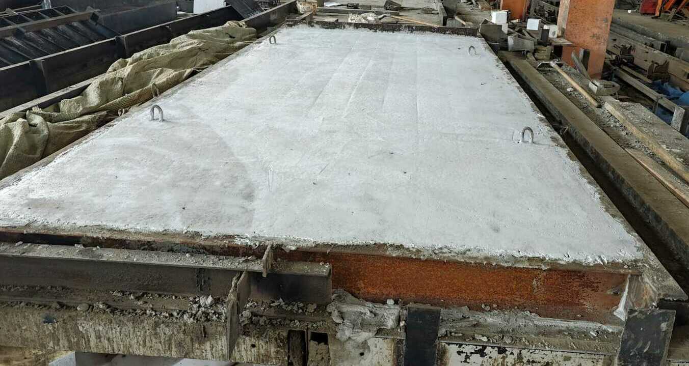 Фото плиты перед испытанием (начальный прогиб плиты под нагрузкой составил 0мм, что говорит о ее высокой прочности и малой деформативности и это при экономном расходовании рабочей арматуры при проектировании!):