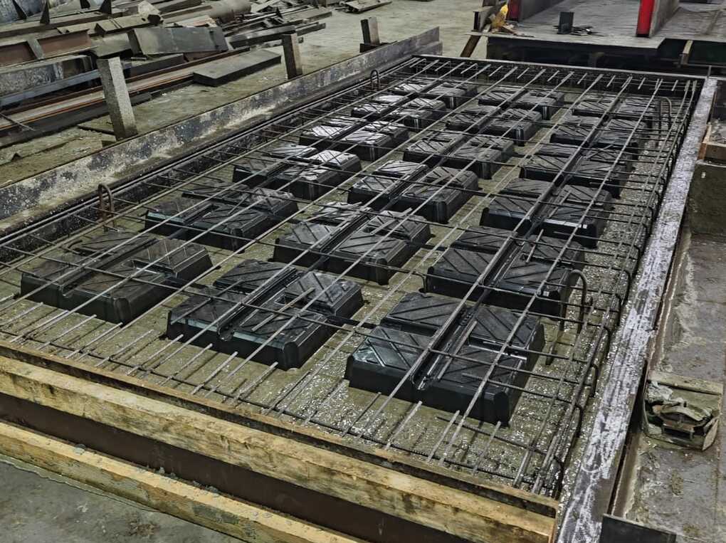 Фото готового каркаса плиты с интегрированными в него несъемной опалубкой Сибформа®: