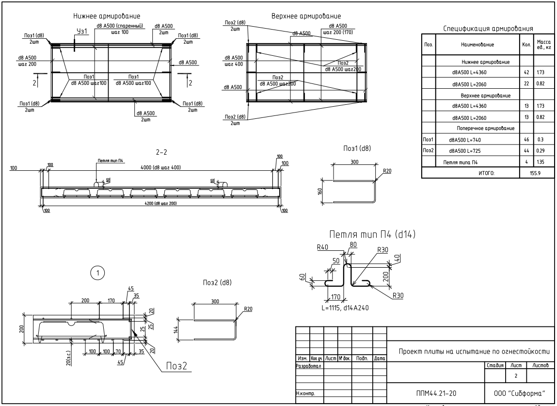 Важно отметить, что испытанная плита обладает отличными технико-экономическими характеристиками. Расход арматуры в испытанной плите, способной выдерживать необходимые нагрузки и держать столь высокий предел огнестойкости, получился небольшой – 98,1 кг/м3 (!), что меньше чем во многих проектах современных зданий. В качестве рабочего армирования использована арматура диаметром 8мм (!) с защитным слоем бетона в 20мм, что также является минимальным для монолитных зданий у большинства Застройщиков.